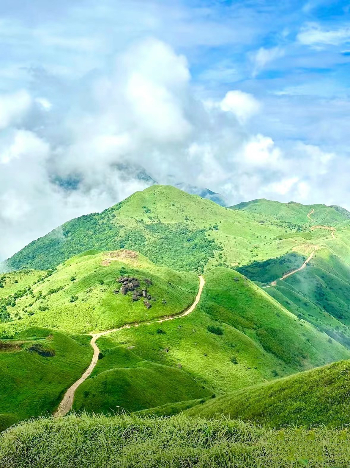 拥有武功山同款高山草甸,一眼望去蓝天白云,山顶连绵不绝的草原,偶遇云海仙气飘飘