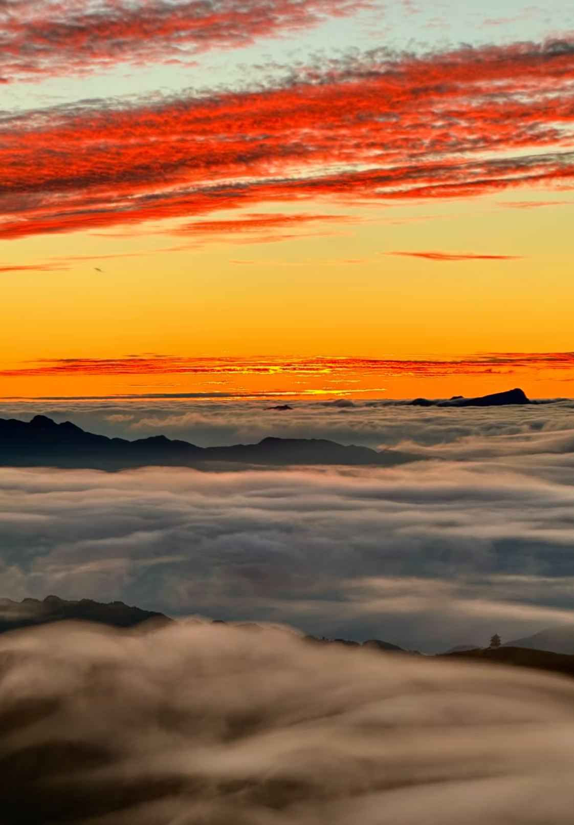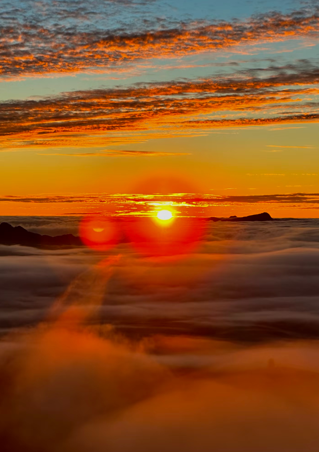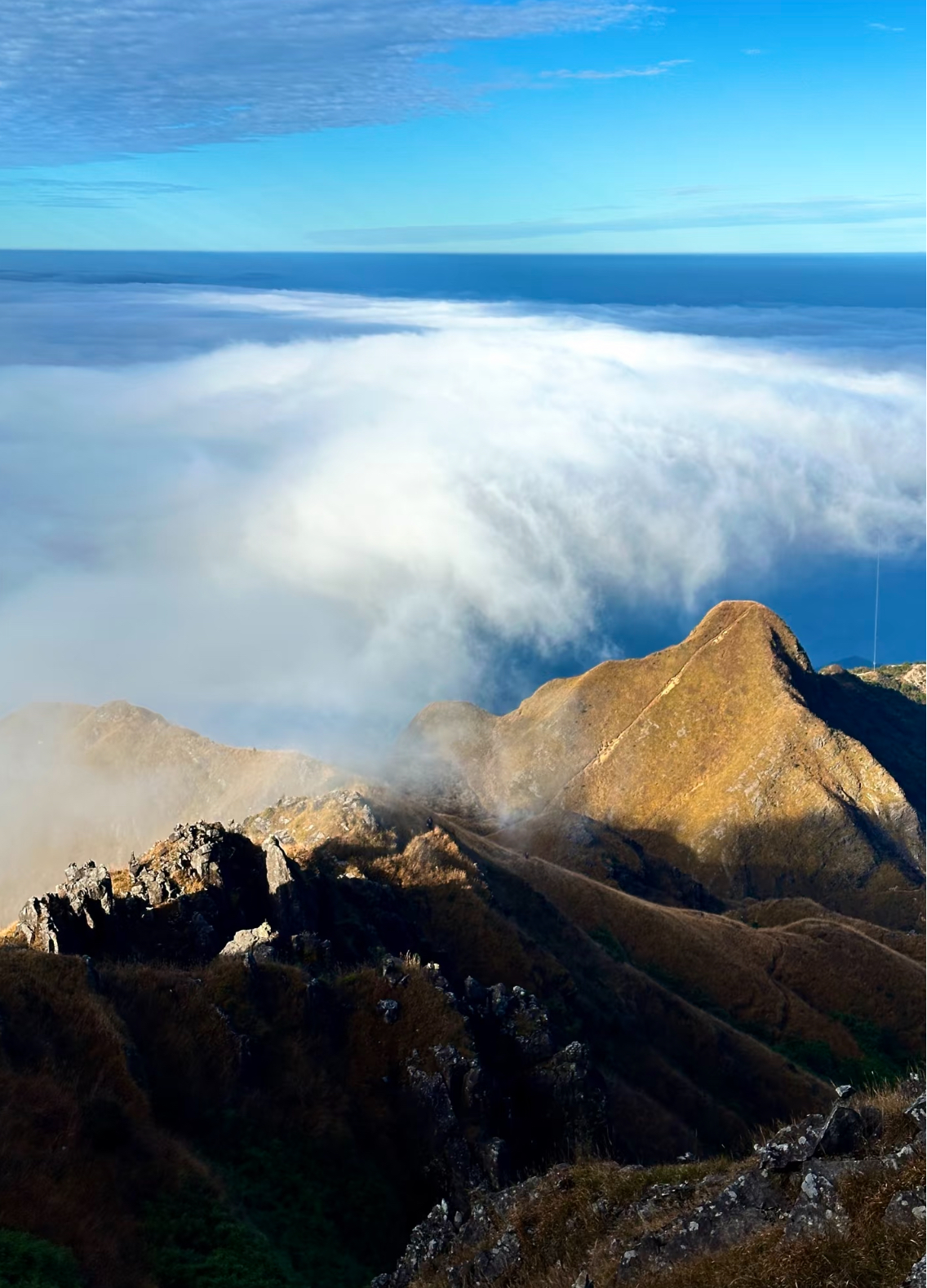 夜爬虽累 但当山顶上看到随风流动的云海和太阳慢慢升起的那一刻,疲惫瞬间消失。