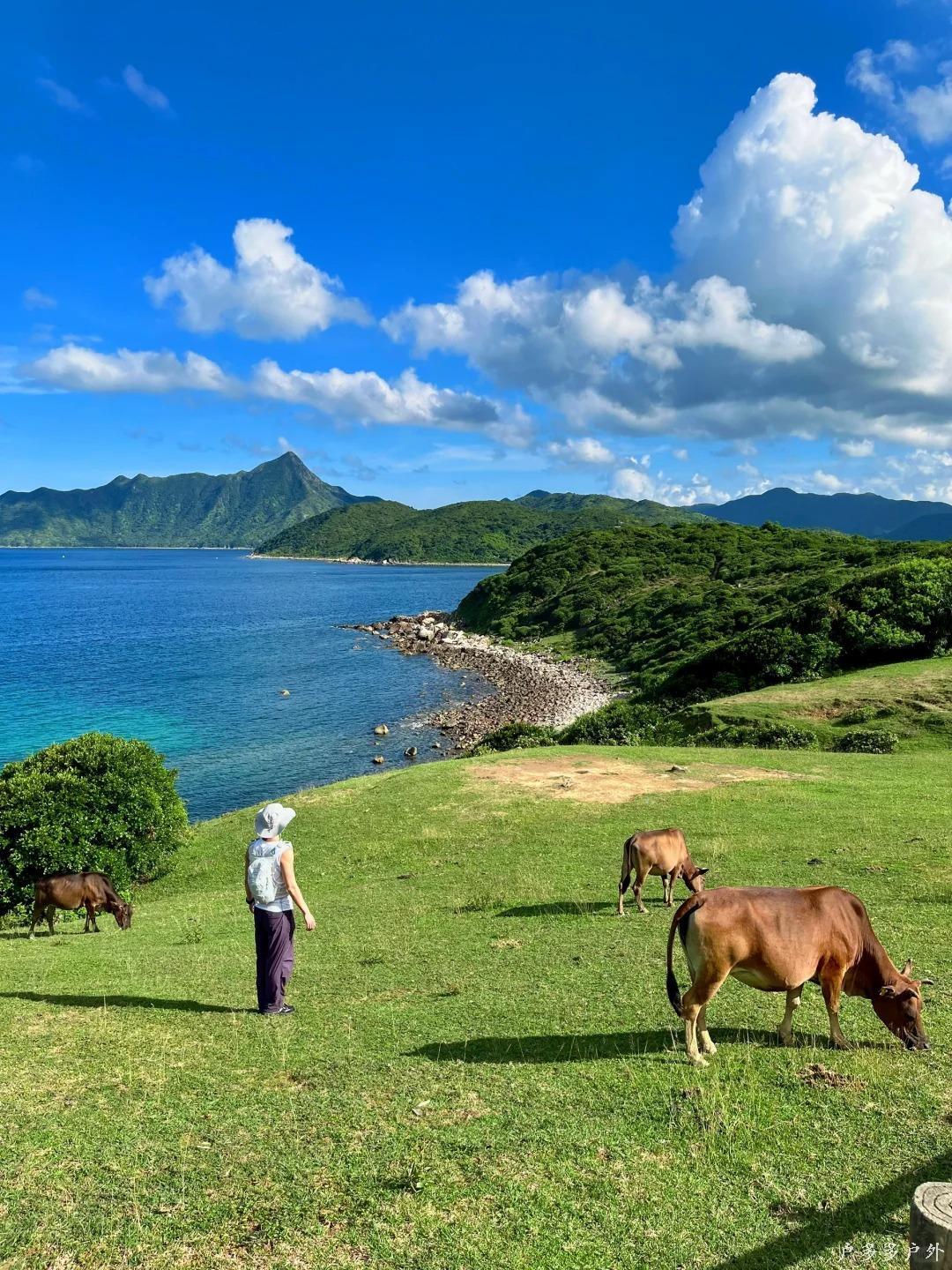 途中常能与岛上的野生牛群不期而遇,它们悠闲吃草的模样也成为一道独特风景。